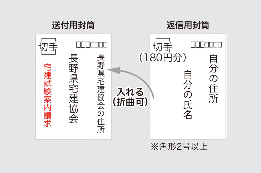 • 封筒の表面に「宅建試験案内請求」と朱書きし、その中に返信用封筒を入れてください。